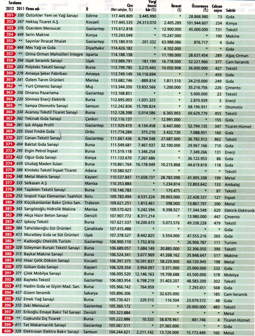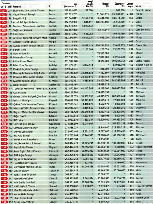 Anadolunun En Büyük Şirket Sıralamaları